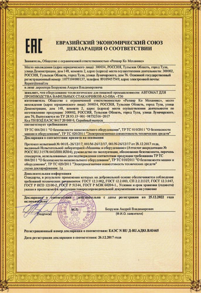 Печь А2-ОВА-Т30 для автоматического производства Вафельных стаканчиков