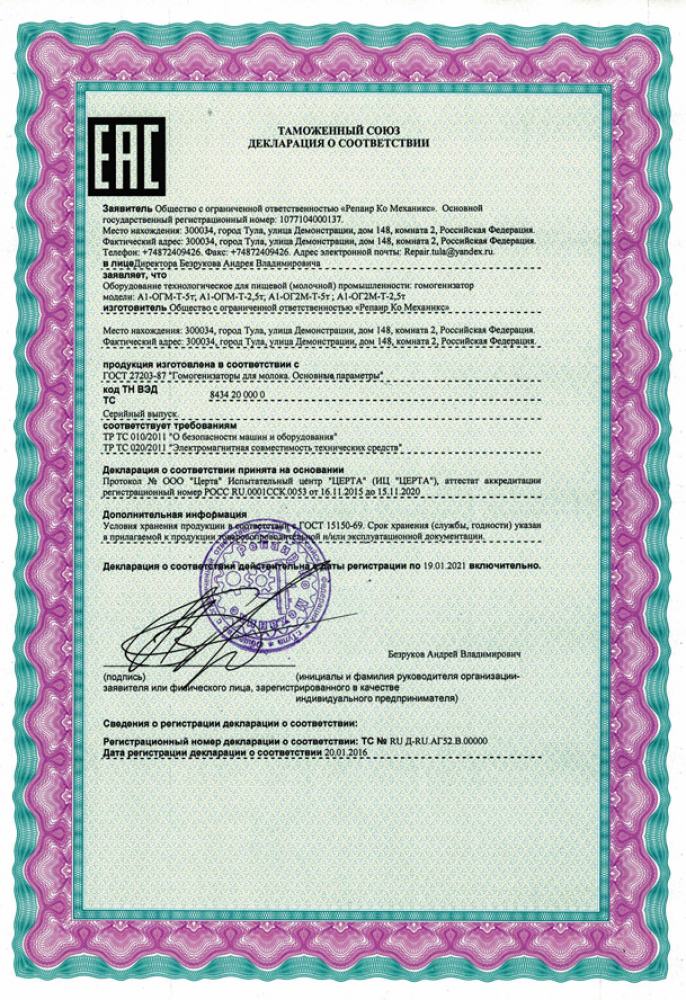 Гомогенизаторы серии А1-ОГМ-Т плунжерного типа высокого давления